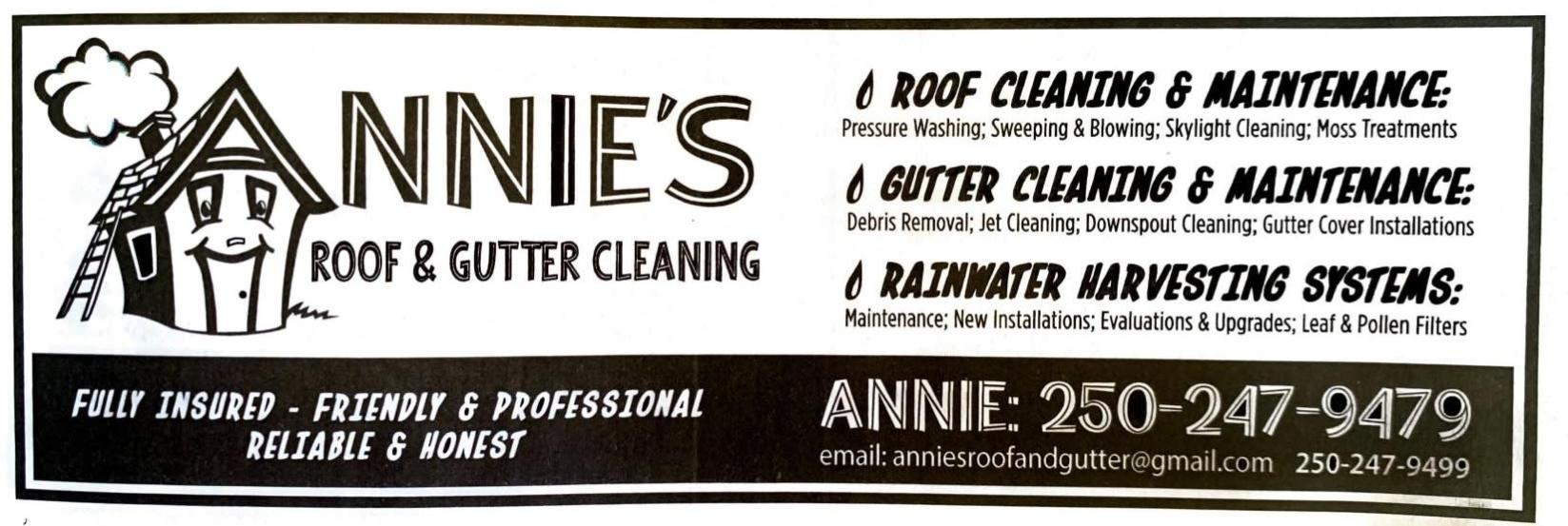 Reliable, affordable, roof and gutter cleaning based right here on Gabriola Island. Annie offers friendly, local service with an eye for detail — keeping your home protected and looking its best, rain or shine.