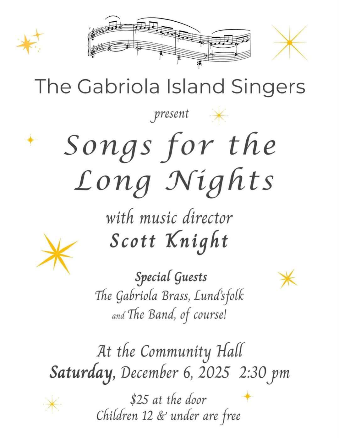 Presenting our Winter concert to our community is a much anticipated tradition for the Gabriola Island Singers. This year is no different as Music Director Scott Knight has pulled together an evocative repertoire that will delight your musical palate, tickle your funny bone, and just generally set you up for the season.