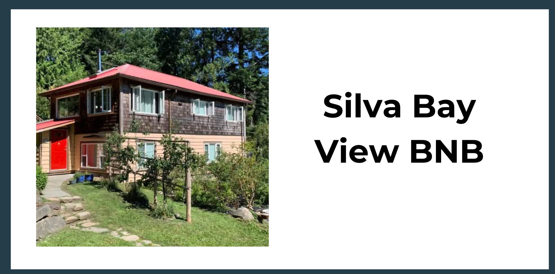 SilvaBayViewBnB is a boutique bed and breakfast located in a heritage orchard of apple, plum and pear trees. A spacious room with a king size bed, fold out sofa and private 4 pc bath. Accessed by your own private walkway and entrance, you create the experience you want. Other included amenities are quality linens, a fridge, coffee maker and kettle for tea. As well, there is also a small private deck with more great views of Silva Bay. Parking is available for 2 cars if required. The beautiful postcard view of Silva Bay awaits you at this charming B and B. Relaxation massage is available onsite from Melanie Teichroeb and Gabriola Massage. Located at Silva Bay we are a 10 minute walk from the marinas and the Gulf Island Sea Plane Terminal. Kayaking the Flat Top Islands and ocean-side walks at Drumbeg Provincial Park are minutes away.